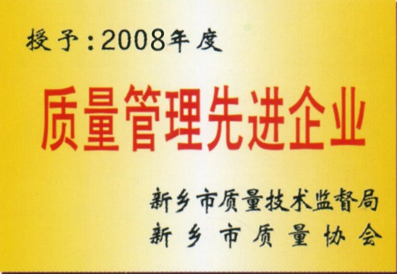 市技術(shù)監(jiān)督局和市質(zhì)量協(xié)會共同頒發(fā)質(zhì)量管理先進(jìn)企業(yè)